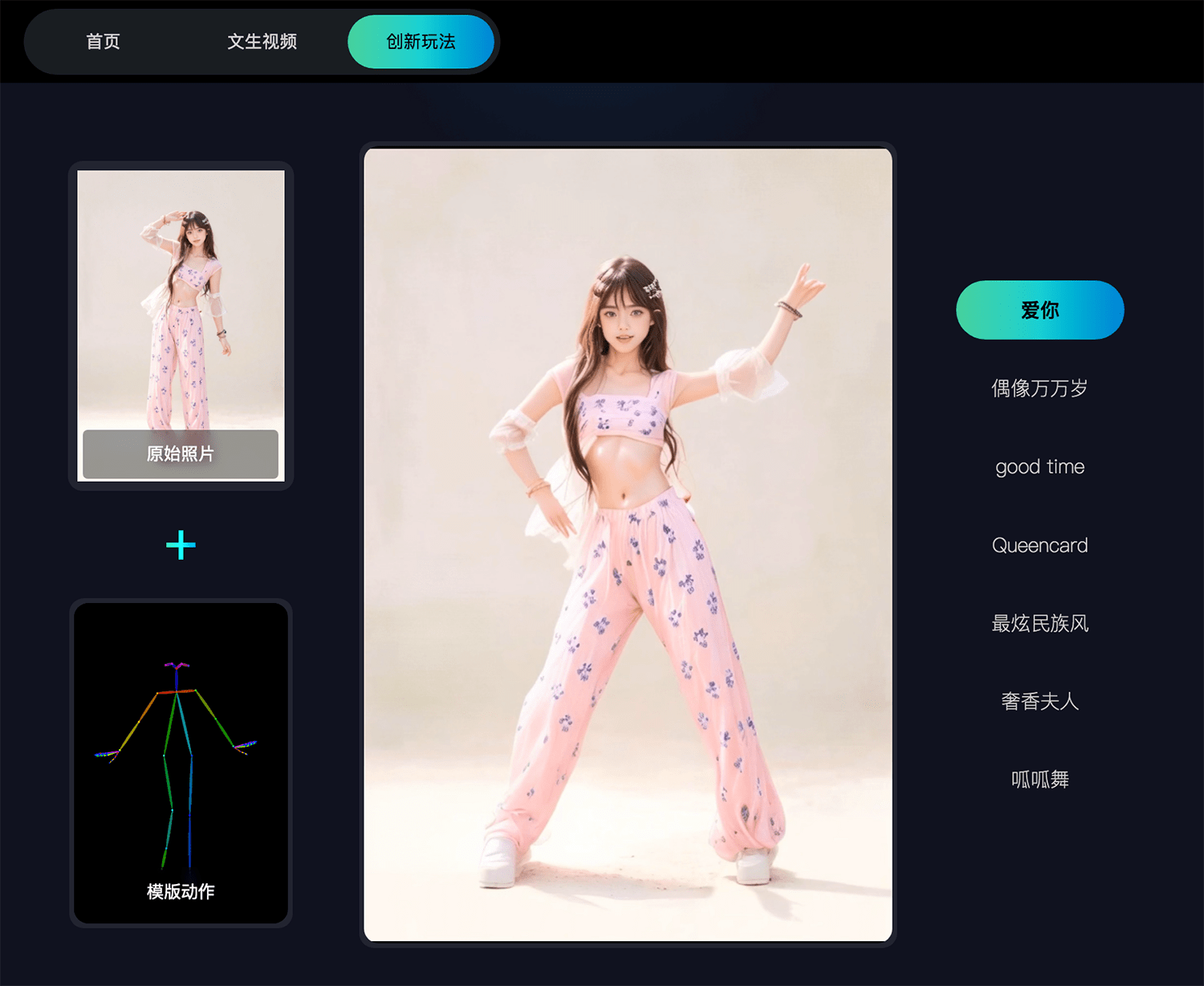 🌈 表情身体驱动 可灵大模型基于自研的3D人脸和人体重建技术,结合背景稳定性和重定向模块,实现表情肢体全驱动技术,可灵AI仅需一张全身照片,即可体验生动的“唱跳”玩法。