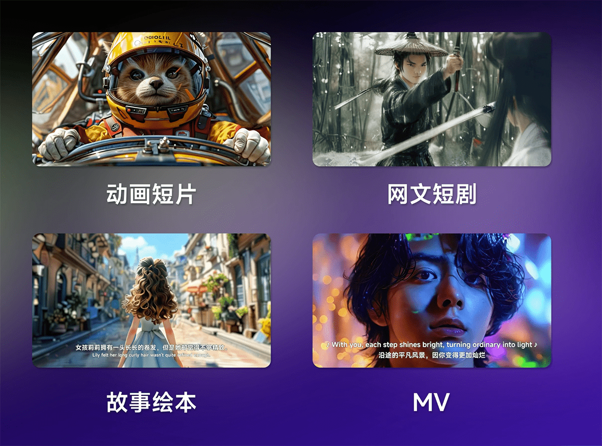 与常规文生视频产品不同,MOKI深度理解视频创作者需求,实现内容和成本的双重可控,目前可以进行多种视频场景的AI 短片创作,MOKI在动画短片、网文短剧、故事绘本和MV等视频场景中具有较高的适用性。