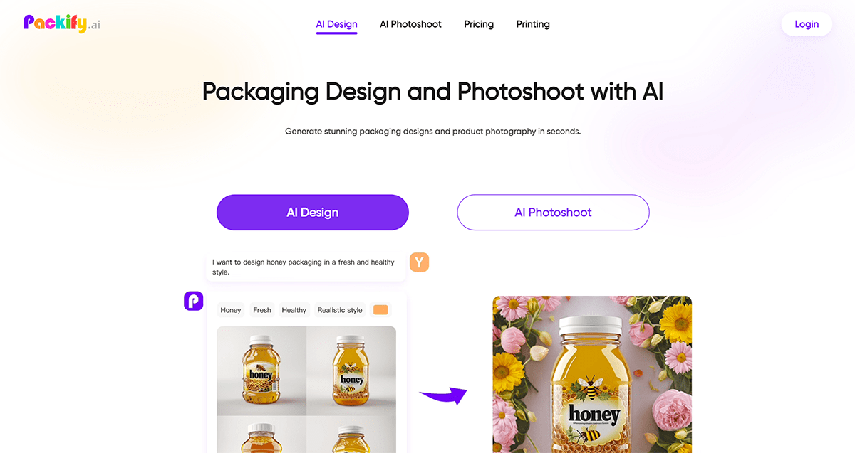 用户可以通过简单的文本提示或对话,描述他们的包装设计想象,Packify AI会根据这些输入生成创意设计方案。