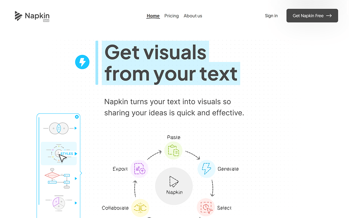 用户只需输入或粘贴文本,Napkin AI 即可自动生成相关的视觉效果,无需复杂的提示或设计技巧。