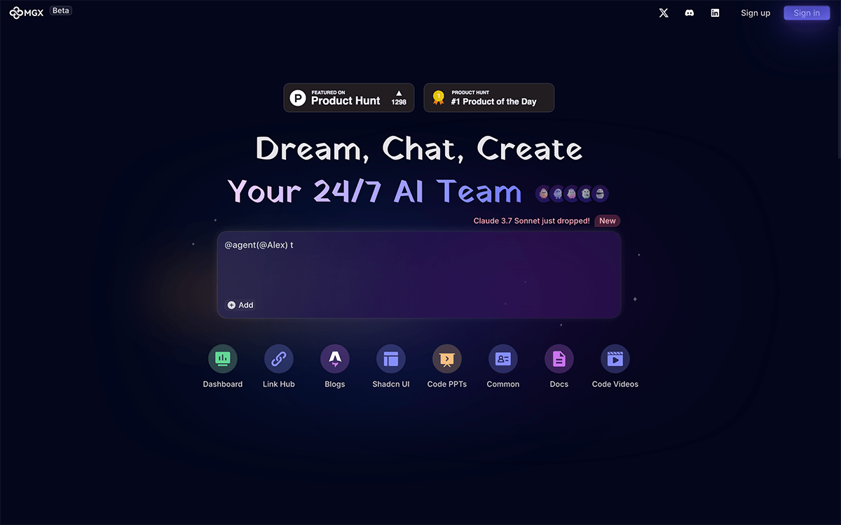 用户只需提出需求(如“创建一个博客”),MGX 就能通过AI团队的协作自动完成开发流程。