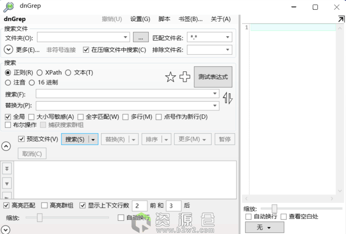 - 高亮预览:匹配关键词在右侧窗格彩色高亮显示上下文